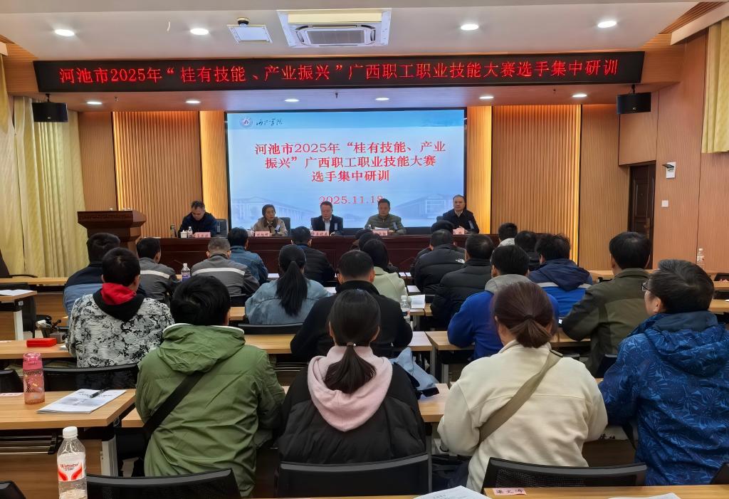 11月19日,河池市2025年“桂有技能、产业振兴”广西职工职业技能大赛选手集中研训活动在Beat365官网启动。来自河池市多个行业的27名选手齐聚一堂,围绕质检员、食品安全管理师、水处理技术、物联网安装调试员等十个工种展开系统性训练。