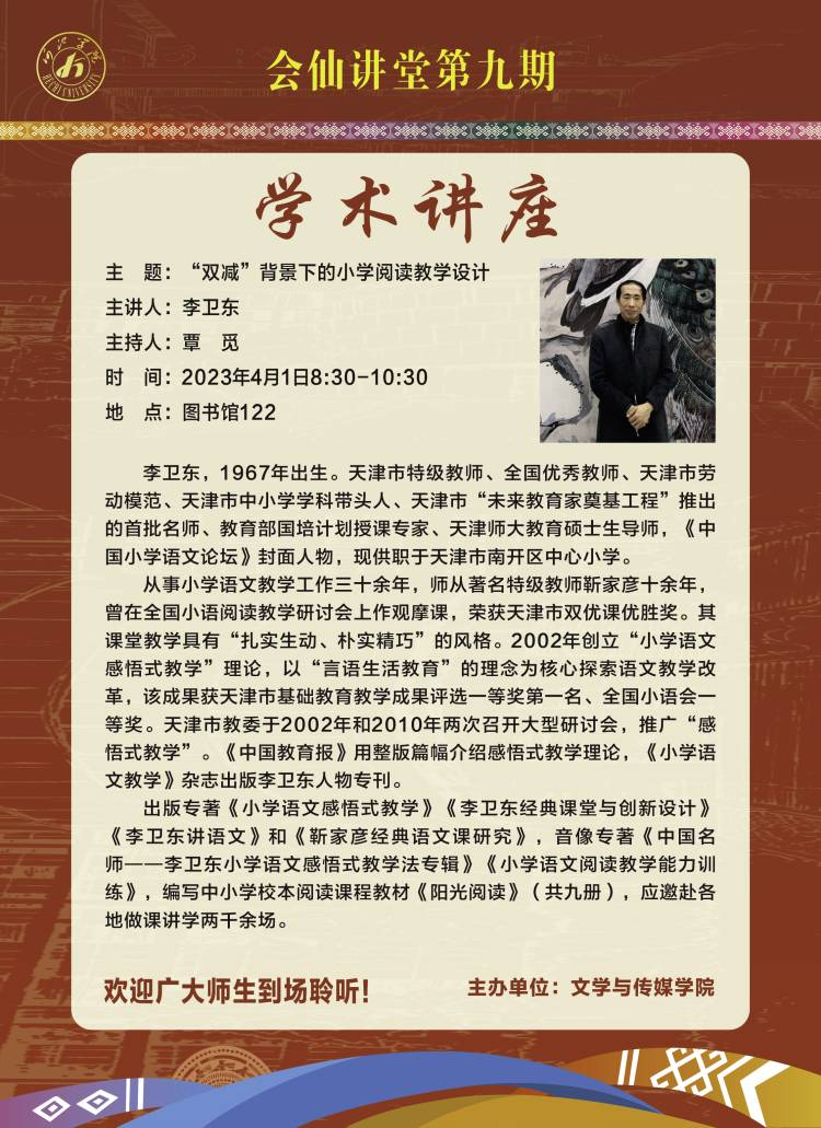 【学术讲座】“双减”背景下的小学阅读教学设计