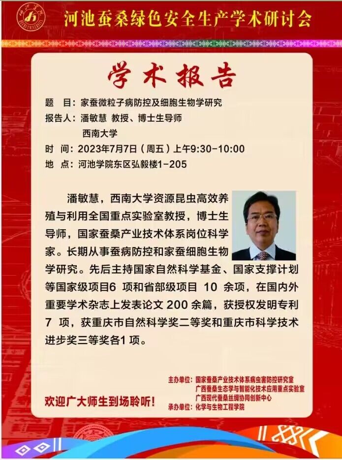 【学术报告】家蚕微粒子病防控及细胞生物学研究