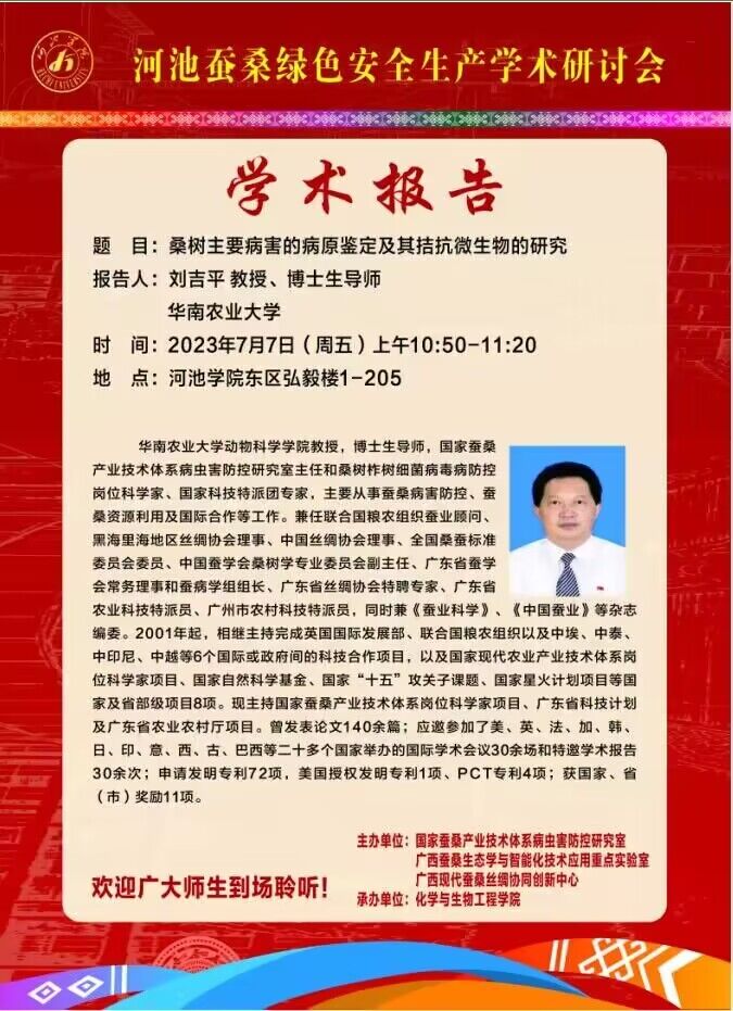 【学术报告】桑树主要病害的病原鉴定及其拮抗微生物的研究