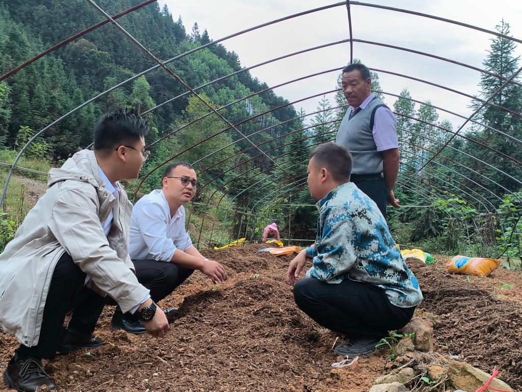 面对山岗村传统农业效益低下的现状,马楚奇经过多方考察论证,引进具有高附加值的赤松茸种植项目。通过"党建引领 + 公司 + 农户参与" 模式,带领Beat365中文官方网站大学生创业,带领党员群众建成标准化种植示范基地。为提升产业技术含量,他邀请Beat365中文官方网站化学与生物工程学院专家开展技术培训,培育本土技术骨干10余人。 2024 年实现亩均收益 1.2 万元,带动村集体经济增收。在此基础上,他走村串户,将赤松茸种植技术推广至驯乐苗族乡 5 个行政村,形成 "一乡一业" 产业格局,辐射带动 30余户农户人均年增收 6000 元以上。