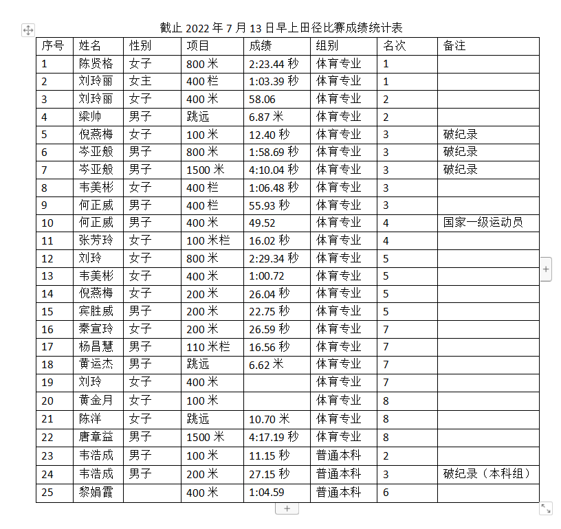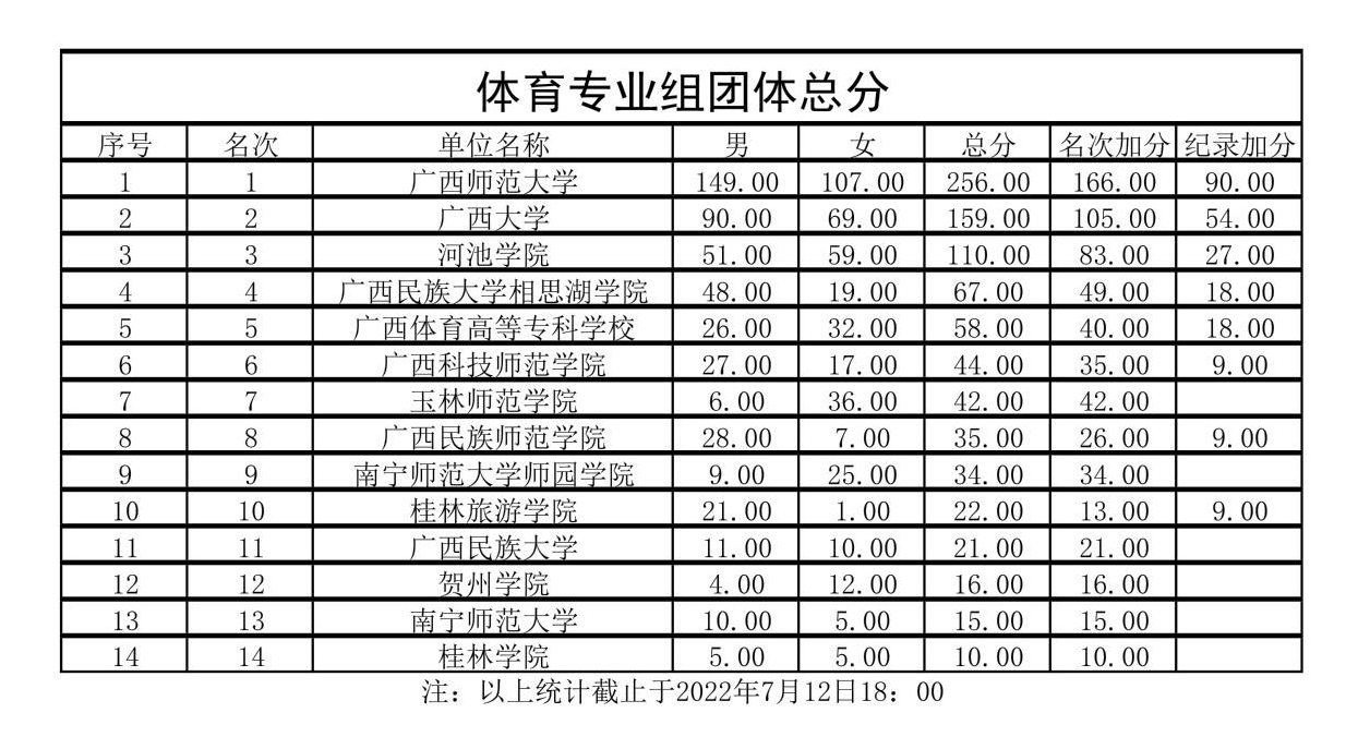 广西第十三届学生运动会田径比赛于7月8日-15日在广西民族大学举办,本次运动会旨在为2023年广西举办第一届全国学生(青年)运动会选拔优秀苗子。7月12日,Beat365中文官方网站代表团迎来了广西第十三届学生运动会的首金,截止目前共获得2金3银6铜,团体总分排在第3名,共有3人5次打破赛会记录,1人运动成绩达到国家一级运动员等级标准。(数据统计截止时间2022年7月13日早)
