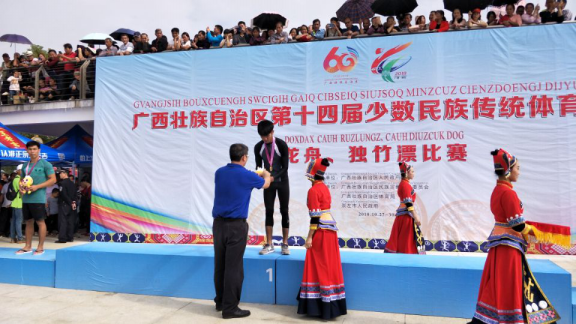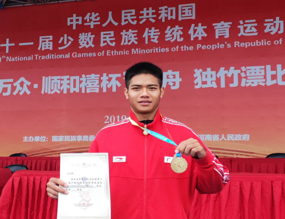 第一次参加比赛的他,就取得了不俗成绩,2017年民体杯全国独竹漂比赛中荣获一个一等奖,二个二等奖,一鸣惊人。在这次比赛结束后,他没有骄傲自满,停滞不前,而是继续努力,突破自我,在2018年广西壮族三月三独竹漂全国邀请赛中获得男子60米一等奖,男子100米二等奖,男女混合接力赛一等奖多项优异成绩;在2018年广西第十四届少数民族传统体育运动会上勇夺男子60米和200米直道竞速一等奖,男子100米二等奖,男女60米接力一等奖。这些成绩都是他坚持不懈的最好回报。