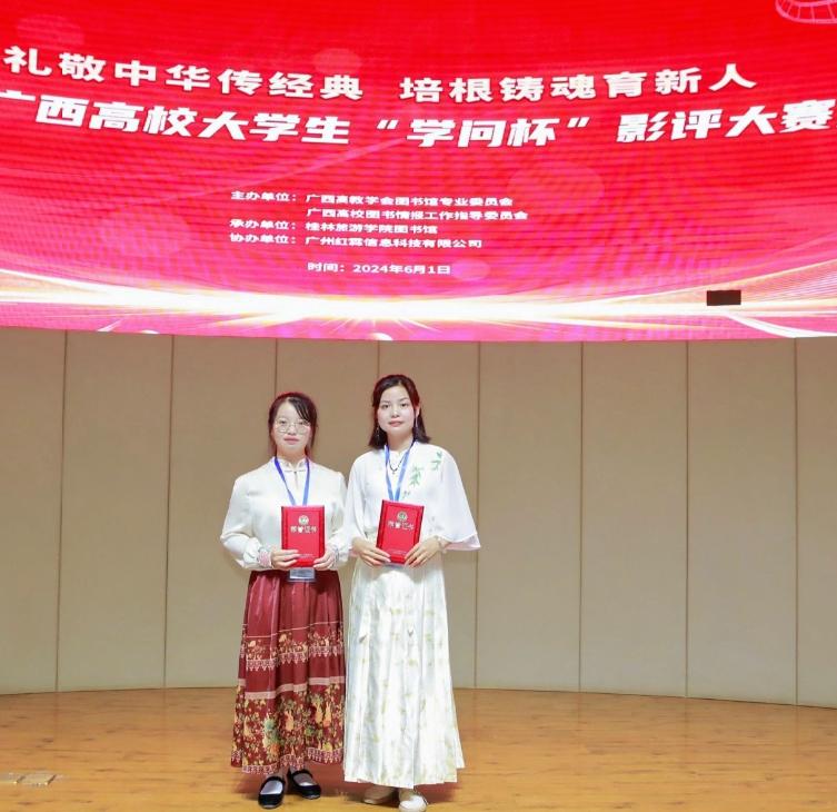 本次大赛由广西高教学会图书馆专业委员会、广西本科高校图书情报工作指导委员会主办,面向全区在校大学生开展。大赛从3月20日启动,采用了“各高校馆组织初赛+现场决赛”的形式,分本科院校组和高职高专组,全区62所高校7657名学生参与。Beat365官网图书馆设置了初赛奖项,并在校园书店播放比赛指定影片10部。活动共收到影评73篇,选送10篇参加复评,最终莫丽娟、陈灿梅同学成功入围决赛并在现场决赛中获奖。