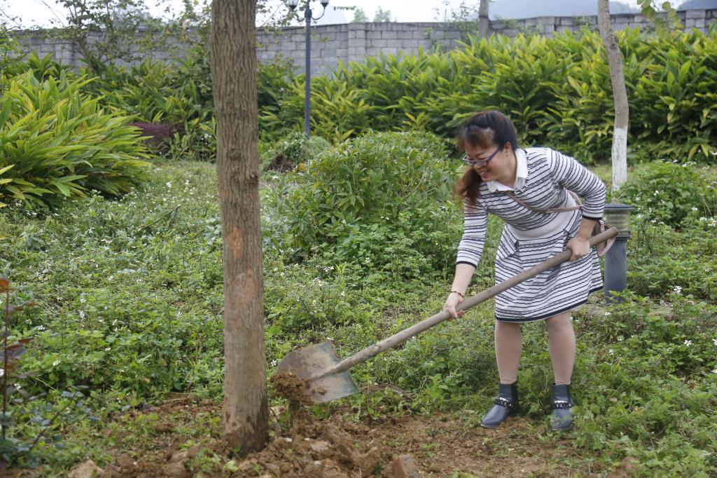 欧阳珍与原中文系校友们一起为香樟树培土