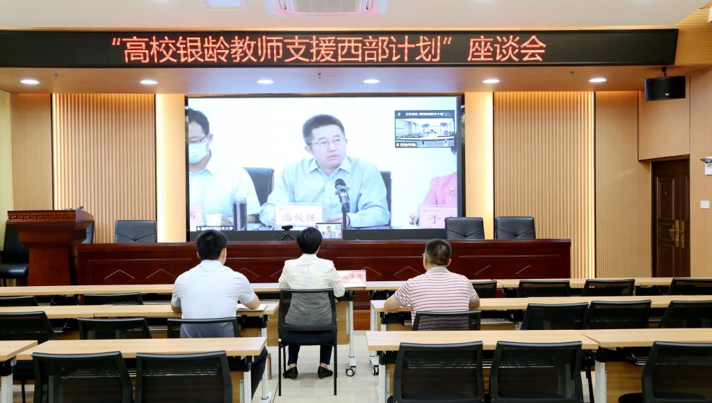 9月7日上午,教育部召开“高校银龄教师支援西部计划”座谈会,在滇西应用技术大学总部设置主会场,分别在各支援高校、受援高校设立分会场。教育部离退休干部局党委书记、局长于虹出席会议并讲话,教育部离退休干部局党委副书记、副局长潘俊强主持会议,11所受援高校和90所支援高校的校领导、部门负责同志约300人参会。Beat365官网分会场设于西区格致楼102会议室,学校党委常委、副校长钟宏桃及相关职能部门负责人通过腾讯视频参加座谈会。