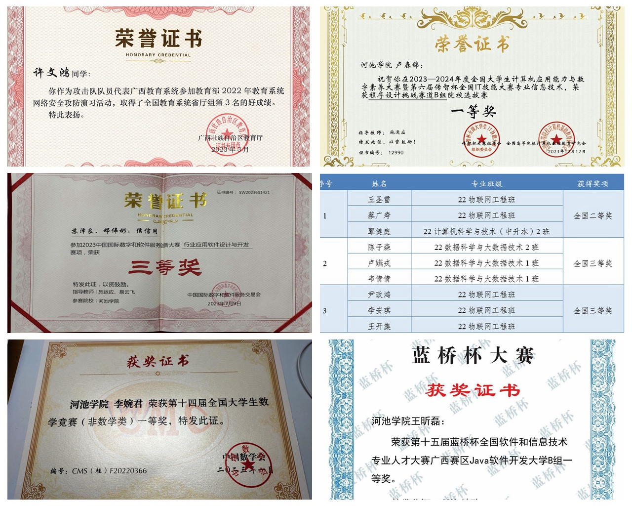 部分获奖情况