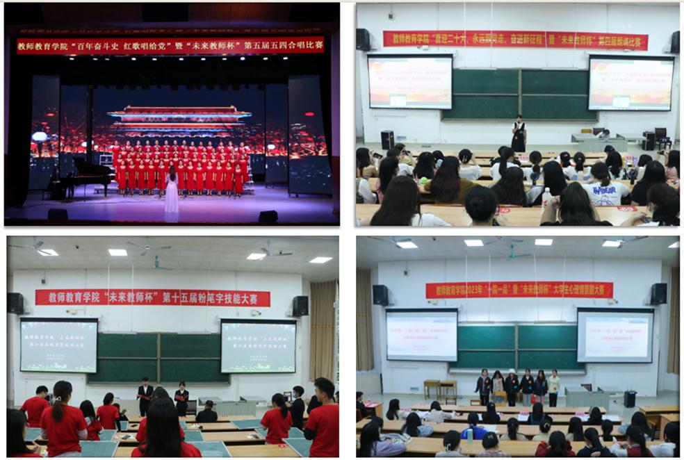 聚焦社会发展需求,回应时代呼唤,教学做合一,学院始终秉承“学生发展中心”理念,积极构建常规教育和专题教育有机融合的人才培养体系,切实提升师范生综合素质与实践能力。开设教师基本技能训练、模拟试讲、教育见习实习研习等丰富多样的教师教育集中实践课程,努力丰富完善实践教学工作载体,依托教师教育实训中心打造高水平的学生专业实践平台,构建四年一贯、内外融通、符合教师成长规律、富有师范特色的实践教学模式。通过创设教师教学技能“未来教师杯”、“每日一练”等学科专业品牌活动,以考促练、以赛促练,课内点拨与课外自主练习相结合,夯实师范生的教师基本技能。学院获批自治区级大学生校外实践基地1个,自治区级教师教育实践基地1个。近五年,学生获广西师范生技能大赛一等奖3名,二等奖4名,三等奖6名,名列本校各师范院系前茅。