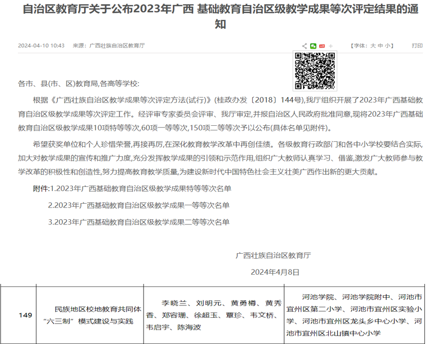 李晓兰教授获得2023年广西基础教育自治区级教学成果二等奖
