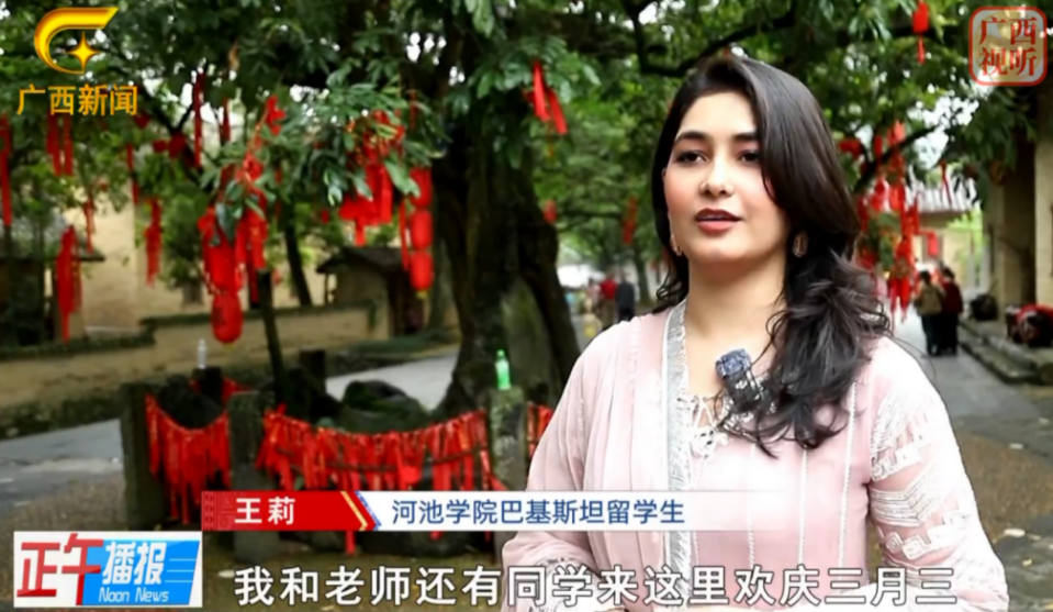广西电视台报道Beat365官网国际学生体验宜州区“三月三”庆祝活动