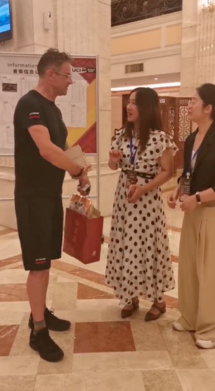 学院教师在2024年环广西公路自行车世界巡回赛河池赛段担任现场翻译