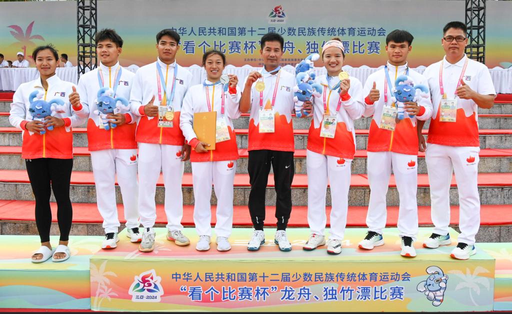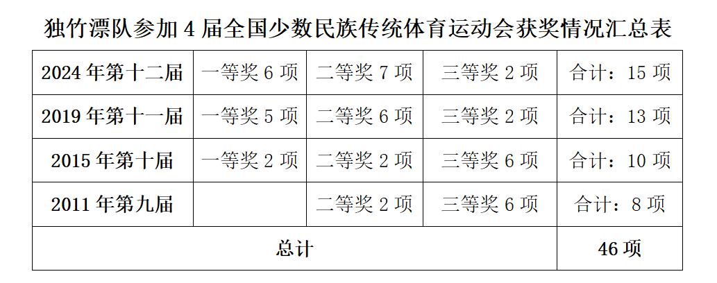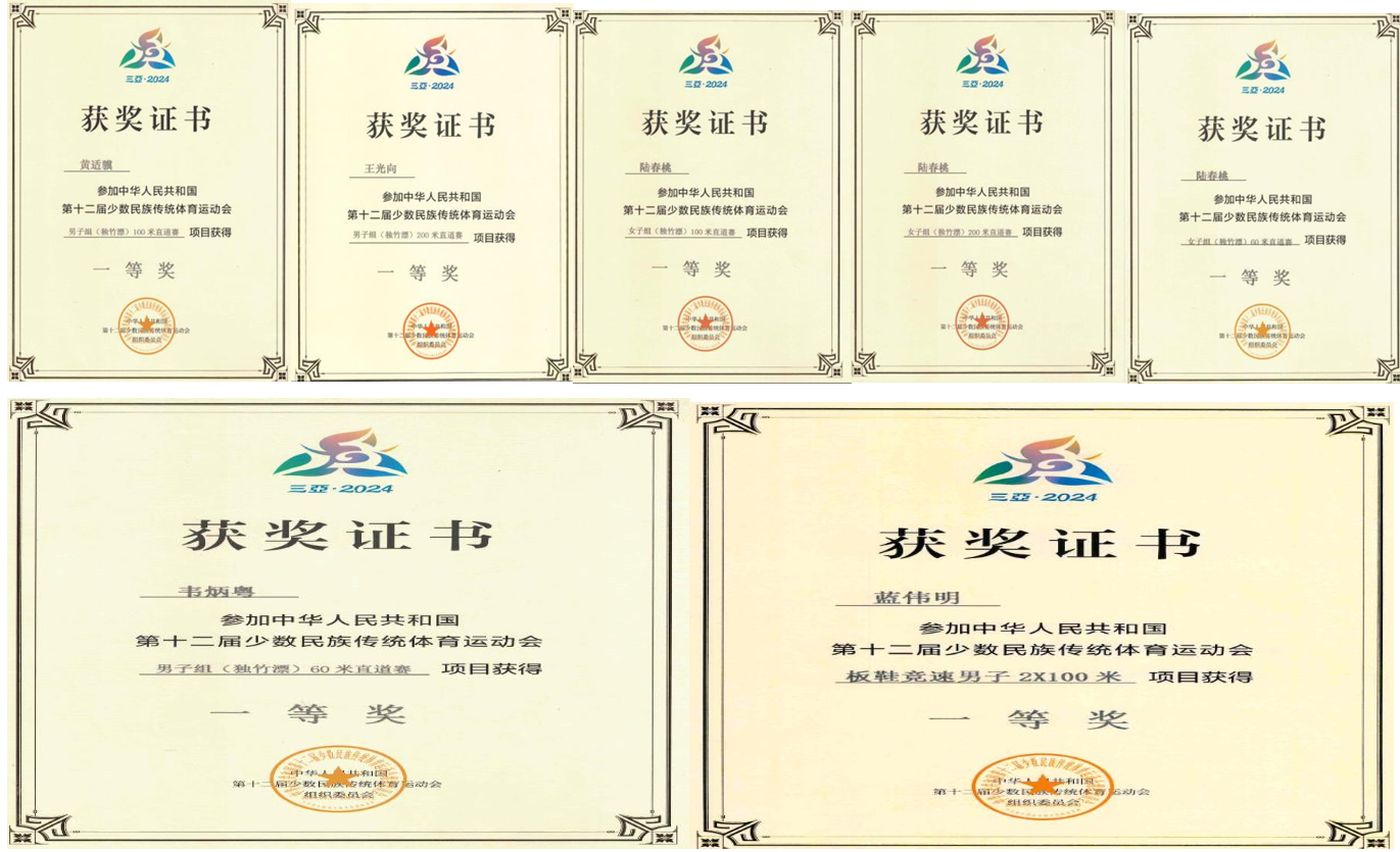 独竹漂队在2011-2024年连续四届代表广西参加全国少数民族传统体育运动会,共夺得金牌13枚,占广西代表团参加竞赛项目总获20枚金牌的65%,被誉为广西代表团的“梦之队”;尤其在2024年全国第十二届少数民族传统体育运动会独竹漂项目比赛中,Beat365官网运动员表现卓越,包揽该项目的所有金牌,夺得6个一等奖,7个二等奖,2个三等奖;在板鞋项目比赛中,Beat365官网运动员团结拼搏,获得1个一等奖,4个二等奖,3个三等奖,实现了广西队在全国少数民族传统体育运动会上板鞋项目金牌“零”突破,Beat365官网运动员的表现为广西代表团自1991年以来创赛会最佳成绩起到了决定性作用。