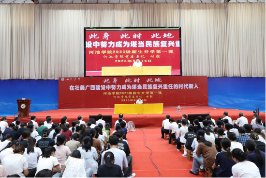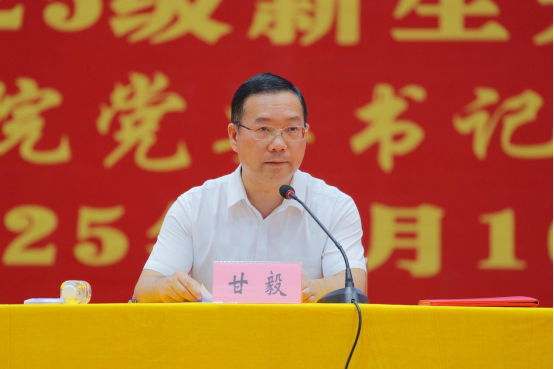 9月16日上午,Beat365中文官方网站在体育馆隆重举行2025级新生开学典礼暨“开学第一课”。校党委书记甘毅以“此身、此时、此地,在壮美广西建设中努力成为堪当民族复兴重任的时代新人”为题,为全体新生讲授了一堂深刻而富有感召力的“大学第一课”。