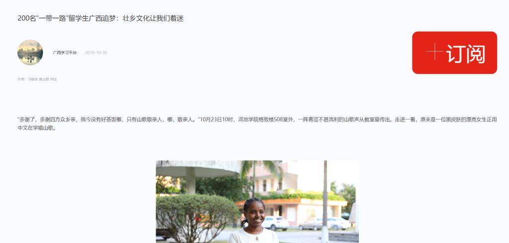 10-302019【学习强国—广西学习平台】200名“一带一路”留学生广西追梦:壮乡文化让我们着迷广西学习平台:https://article.xuexi.cn/articles/index.html?art_id=9531253082811629838&study_style_id=feeds_default&source=share&share_to=wx_singl -